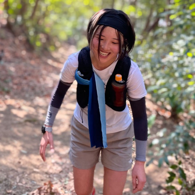 完走に向けての意気込み: トレラン歴0年、主なレース結果なしですが、気合は十分あります。普段はアウトドア用品のお店で働いています。主にアウトドアはボルダリングや外岩に行っていますが、先輩スタッフの影響もあり、トレイルランニングに興味を持ち始めました。それまで走ることには全く興味がなく、走ることが嫌いでした。ありませんでしたが周りのスタッフがトレランに連れて行ってくださったり、自分自身走る楽しさや高揚力を感じ、走る楽しさを教えていただきました。その影響で今回バンビ100マイルのジェネレーション枠に応募しチャレンジしてみたいと思いました。トレイルランニングの事についてもっと知りたい、楽しみたいと、実際に肌で感じたいです。 バトンを繋ぐ準備はできています。楽しく、全力で走ります!